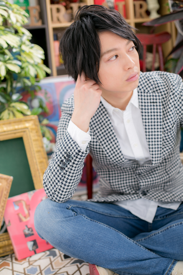 緩いウェーブを活かして、セミウェットなスタイリングでセット。男のフェミニンな色気とカジュアルな雰囲気を黒髪で演出。パーマ初心者にもオススメのウェーブスタイルです。