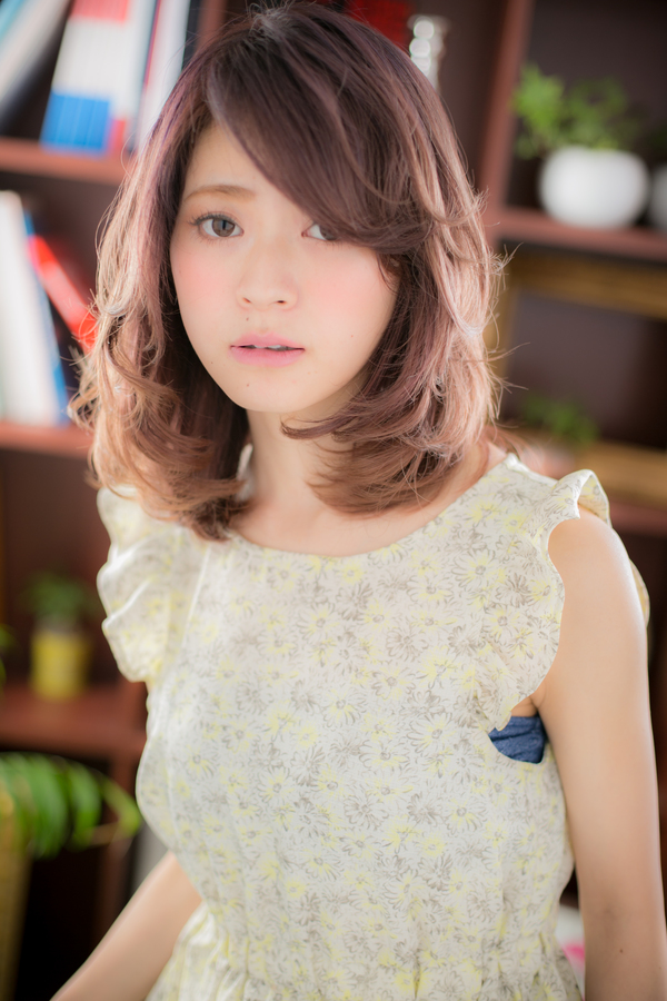 シフォンのような柔らかいエアリーなニュアンスカールが清潔感ある好感ヘアーに☆前髪にもゆるくパーマがっかってるので、斜めバングにしてGOOD。ほつれウェーブやくせ毛風、グラマラスカールにしても大人かわいい♪透明感のあるルミエールカラーがオススメ。