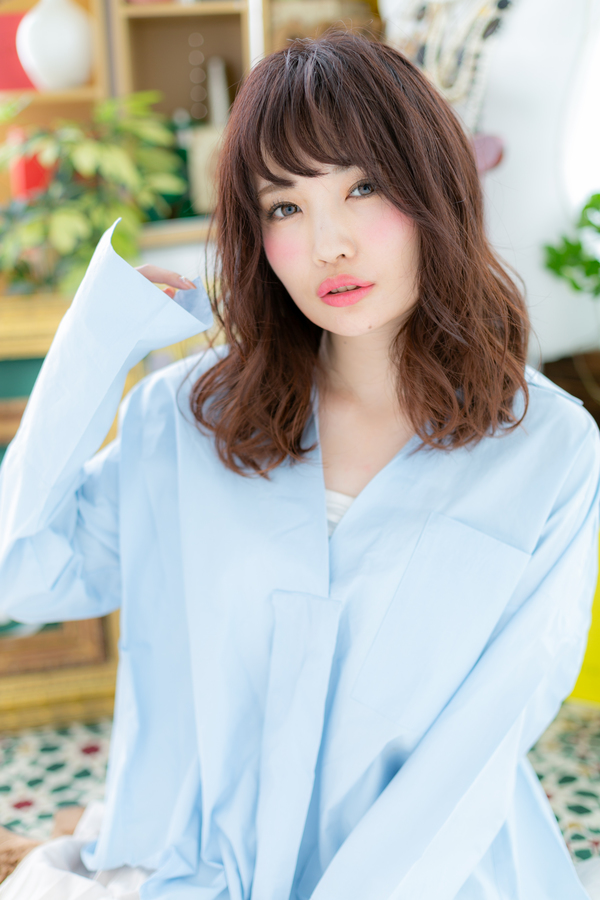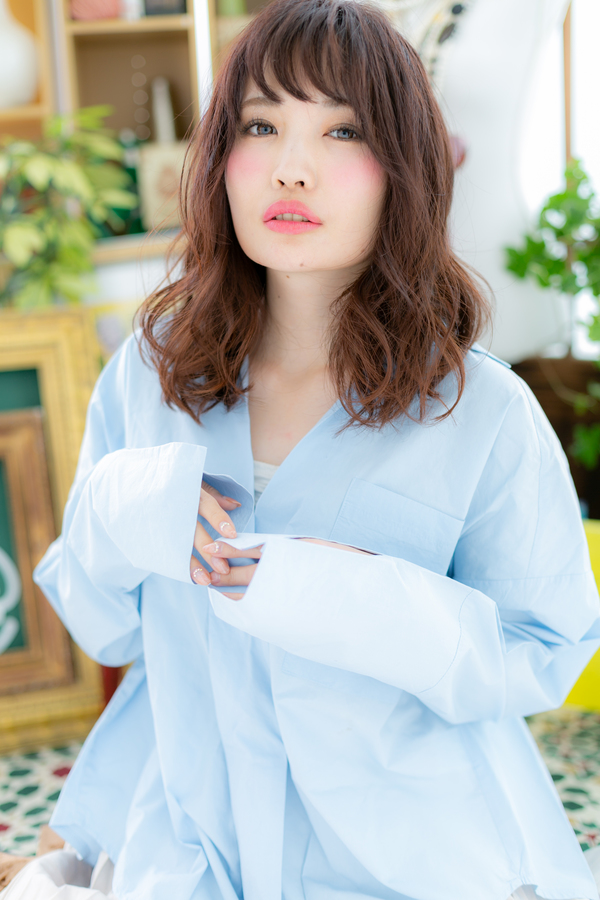 くせ毛風♪透け感カールのラブゆるふわミディ