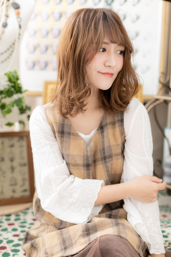斜めバングくせ毛風小顔ラブふわミディ