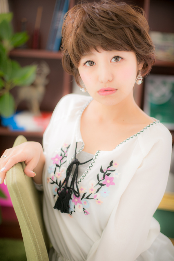 ストレートではだせない、空気感たっぷりのエアリーショートでカジュアルさとフェミニンさを♪カラーもナチュラルな柔らかい色味で、透明感のある軽やかさがでます。