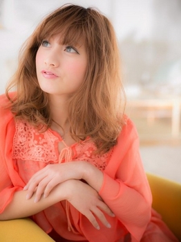 とろけるような、甘~い雰囲気の脱力ウェーブが可愛い、人気のミディアムスタイル。前髪は少し厚めに目の上で揃えて、ゆるふわなスタイルを引き締めて。鎖骨ラインの絶妙なレングスで可愛さUP!
