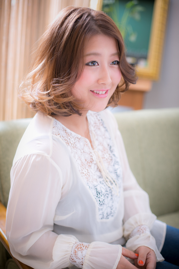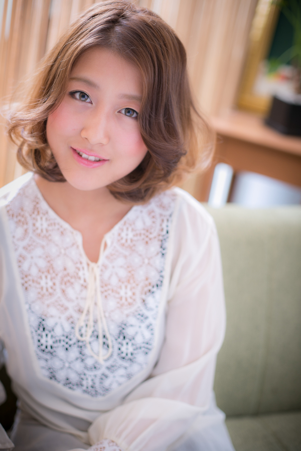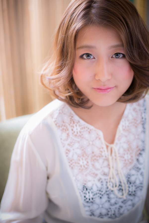 赤みのない外国人風のカラーに毛先に少し強めのカールでアクセント!ストレート感に飽きた方にオススメの華やかさあるミディアムスタイルです。