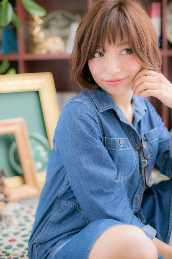 前髪は短めのシースルーバングで明るい表情に見せます☆無造作にセットしてクセ毛風に見せるのもナチュラル感がでてかわいい。