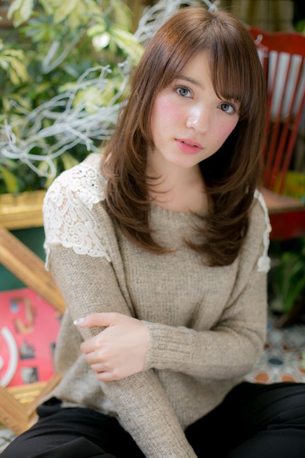 レイヤーで重層感を持たせたエアリーワンカール。毛先のCカールで、ふんわりとしたフェミニンなストレートスタイルに。顔周りを優しく包み込んで小顔効果もバッチリ。