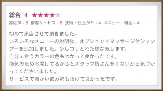 皆様から頂いたお言葉を、技術や接客の改善についてスタッフミーティングなとで話し合っております。