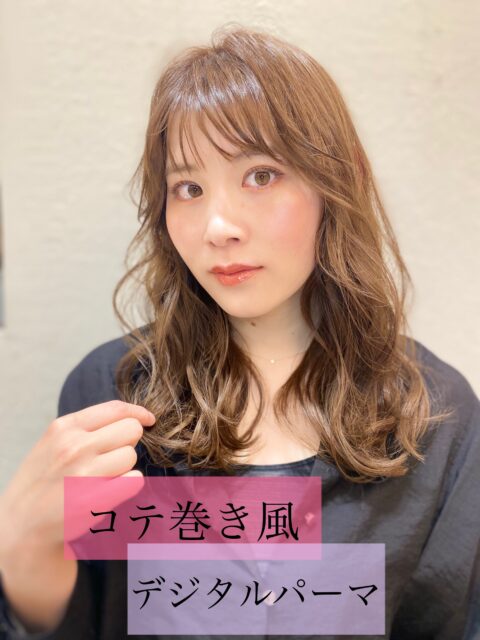コテ巻き風デジタルパーマは、さらにコテで巻いたような質感を追求したパーマで、より自然で柔らかなカールが特徴です^_^