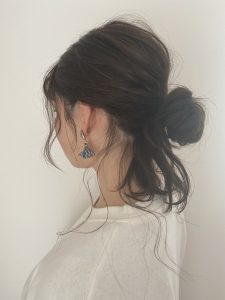 1.顔まわりと耳後ろの髪を出して好きな高さで