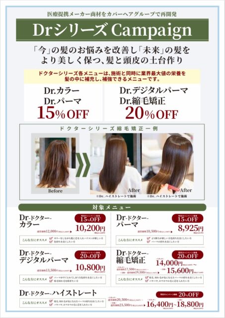 ●Dr.縮毛矯正 20%OFF → ¥14,000~¥15,600