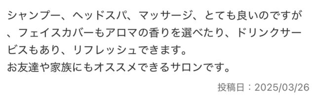 シャンプーがとても気持ちよかったという口コミも多数!!