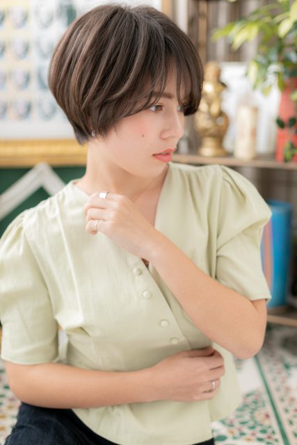 ボリュームを出すところ、削るところを見極め、顔の形とのバランスを整えながらスタイルを作っていきます。