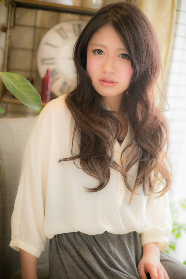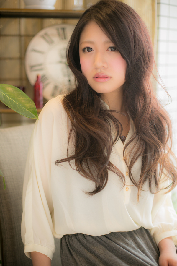 リッジ感のあるロングのウェーブスタイル。大きめのカールをしっかりつけ、でもラフでやわらかい質感が女っぽさをUPさせます。プラス、透明感あるダークトーンのカラーが肌色際立つ、おすすめ美人顔カラーに♪