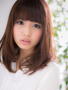 ピュアなイメージの定番セミロングは毛先の丸みがポイント。毛流れが丸く内側に向かうよう、計算してカットします。髪質次第ではパーマや矯正をプラスして。