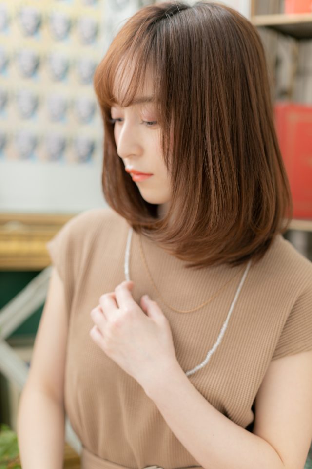 - 前下がりで小顔にしたり,耳かけも大人かわいい/ナチュラルボブやフェミニンボブ,大人ボブや前下がりボブからの伸ばしかけに◎くせ毛風ふわミディもGOOD/斜めバングや厚めバングで目力UPでモテ髪/ヒアルロン酸カラーは白髪にも対応可/20代/30代/40代