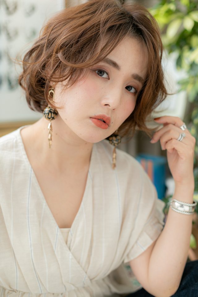 ランダムにかけたくせ毛風ウェーブが顔周りを優しく包み込み、気の抜けたリラクシームードを演出。ムースやワックスをもみこむだけの簡単スタイリング。忙しいママにもオススメです。(メイク担当:COVERHAIRGROUP中田)