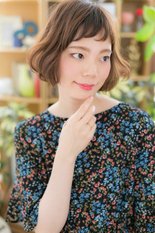 斜めバングや厚めバングで目力強調したり、耳かけも大人かわいい。黒髪でモード風に決めても大人クール。前下がりで輪郭カバーして小顔にメイクしているので、ボブ初挑戦の方にも◎ふわミディやひし形シルエットも旬顔。ヒアルロン酸カラーは白髪にも対応可。