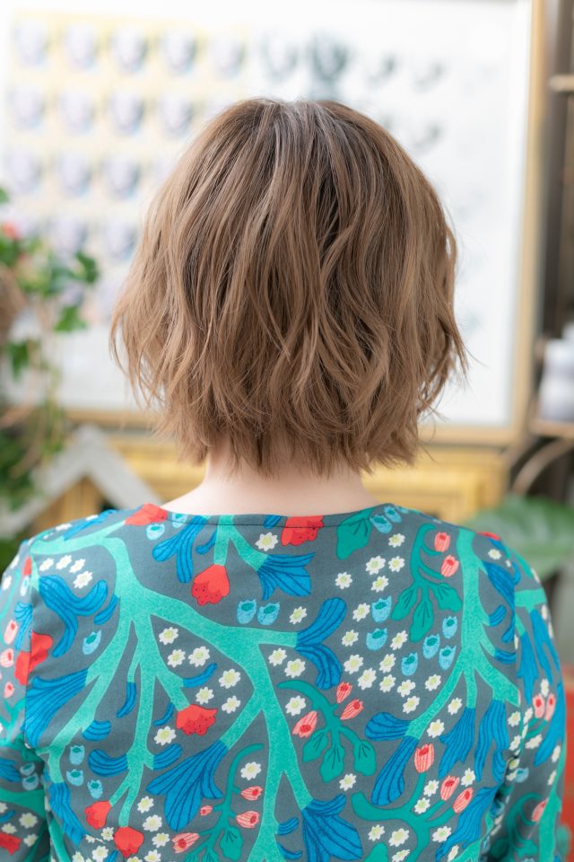 くせ毛風斜めバング外国人風ゆるふわ大人ボブ