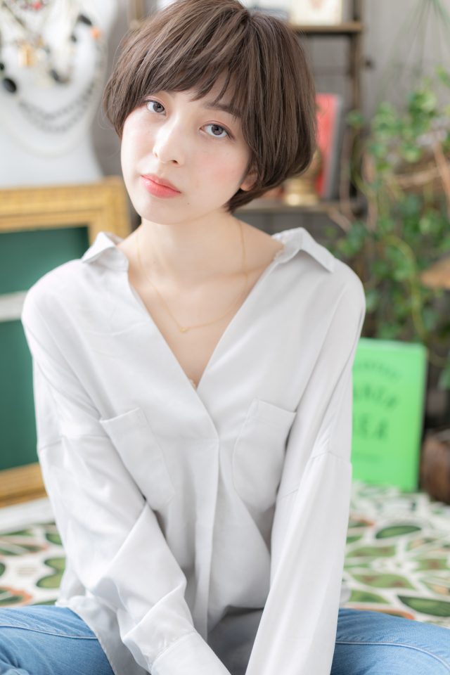 サイドの前下がりラインで輪郭カバーした小顔見せハンサムショー。トリートメントしたようなカラーリングで髪の毛の悩みも解決!人気のカラーやアッシュもおすすめ!ショートは前髪ありも前髪なしもヘアアレンジするのもおすすめなヘアスタイルです。
