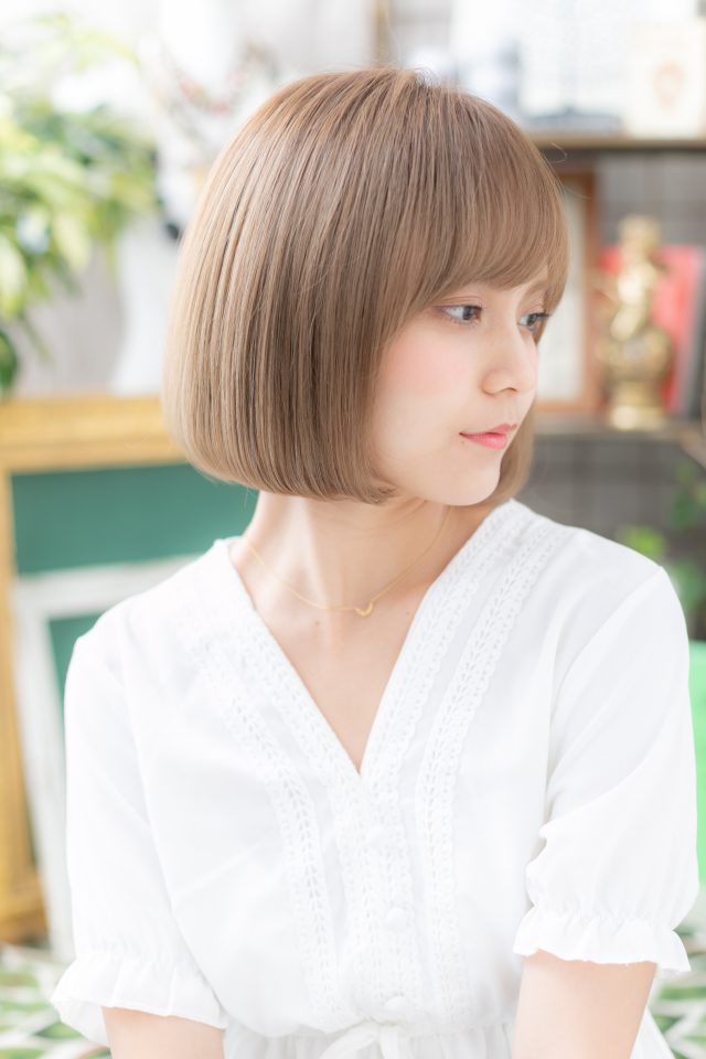 ナチュラルボブはハイトーンやブリーチオンカラーでパッと目を引くグラマラスなヘアスタイルに格上げで大人女子のファッション度UP。ミディアムヘアを際立たせるグラデーションもおすすめ。30代・40代にも◎(メイク担当:川口店 岩渕)