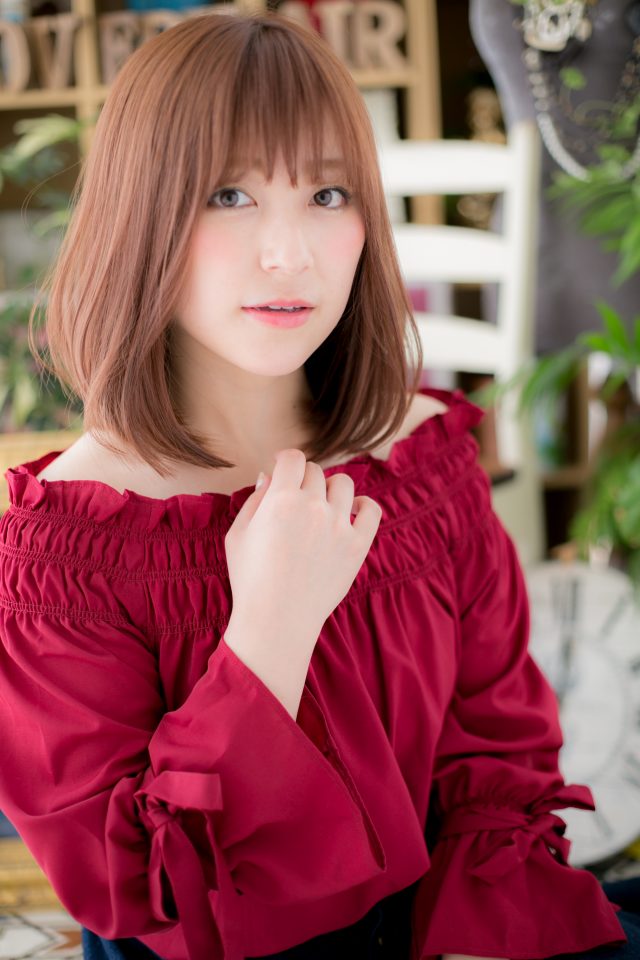 顔周りを包みこむ前下がりフォルムで小顔見せ。斜めバング&厚めバングで目力強調して美人度UP♪ナチュラルミディは、個性的な甘めカラーで差をつけて。耳かけも大人かわいい♪(メイク担当:北浦和店 近藤)
