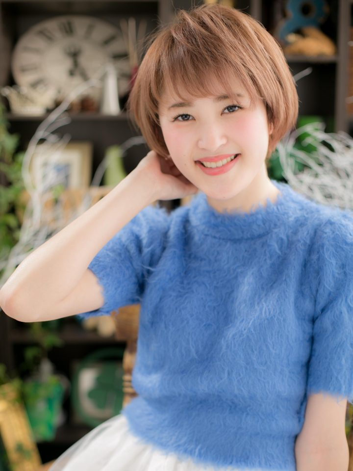 似合わせカットで毛先を軽く調節したカジュアル小顔ショート。前下がりな前髪やアシンメトリー、厚めバング、斜めバングにしたり、うぶバングで眉を出しても大人かわいい☆カラーはグレージュショートがおすすめ♪