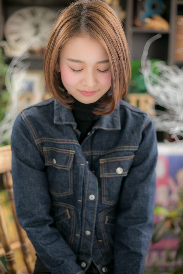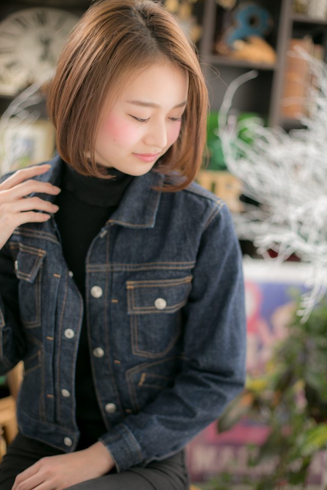 前下がり艶カラー小顔ナチュラルストレート