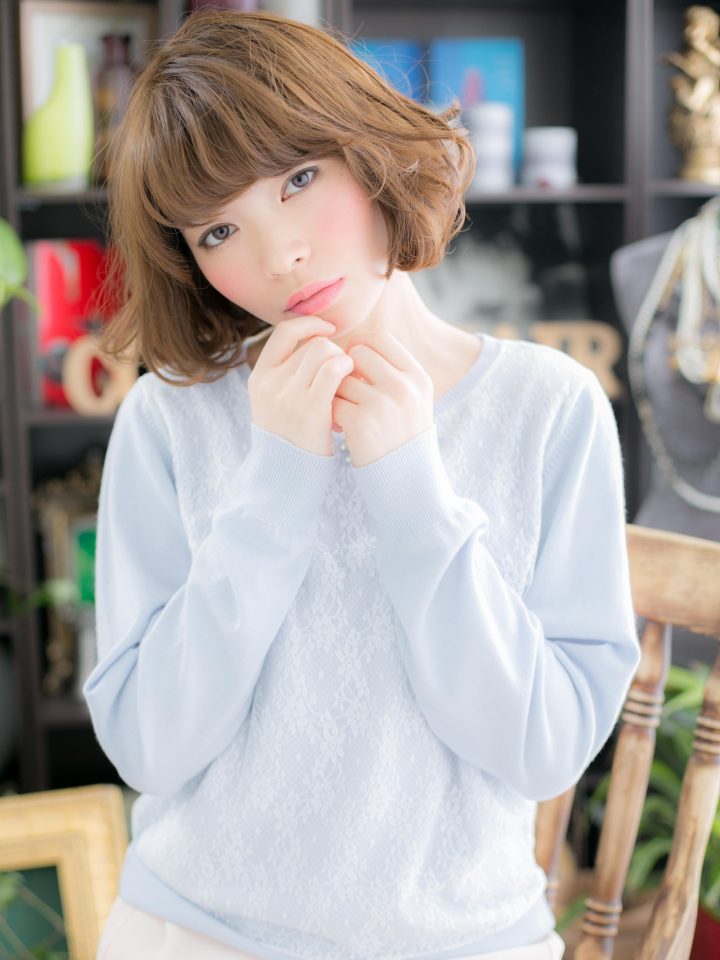 外国人みたいなくせ毛風のアンニュイカールが大人かわいい/フェミニンボブや前下がりボブ,大人ボブやナチュラルボブからのイメチェンにオススメ/リッチカールで結婚式やパーティ風にしてもセクシー&グラマラス/20代/30代/40代