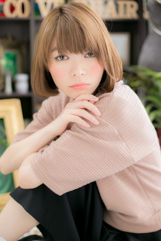 ワンレングスのナチュラルボブにハイトーンのイエローアッシュ系のカラーで個性的に☆斜めバングや厚めバングも◎くせ毛風カールをつけたフェミニンボブや前下がりボブ、クールな大人ボブのイメチェンもGOOD!