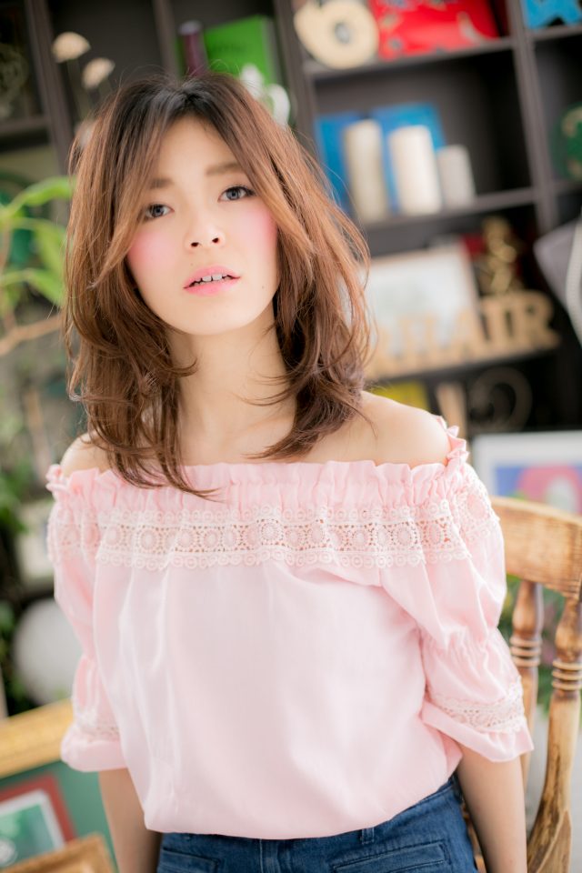 センターパートと前下がりのふんわりしたワンカールで、甘辛MIXなAラインの美人顔。小顔カットでアンニュイなふわミディに。ラフで無造作にかきあげたり、耳かけも大人かわいい。抜け感あるふわミディもトレンド。