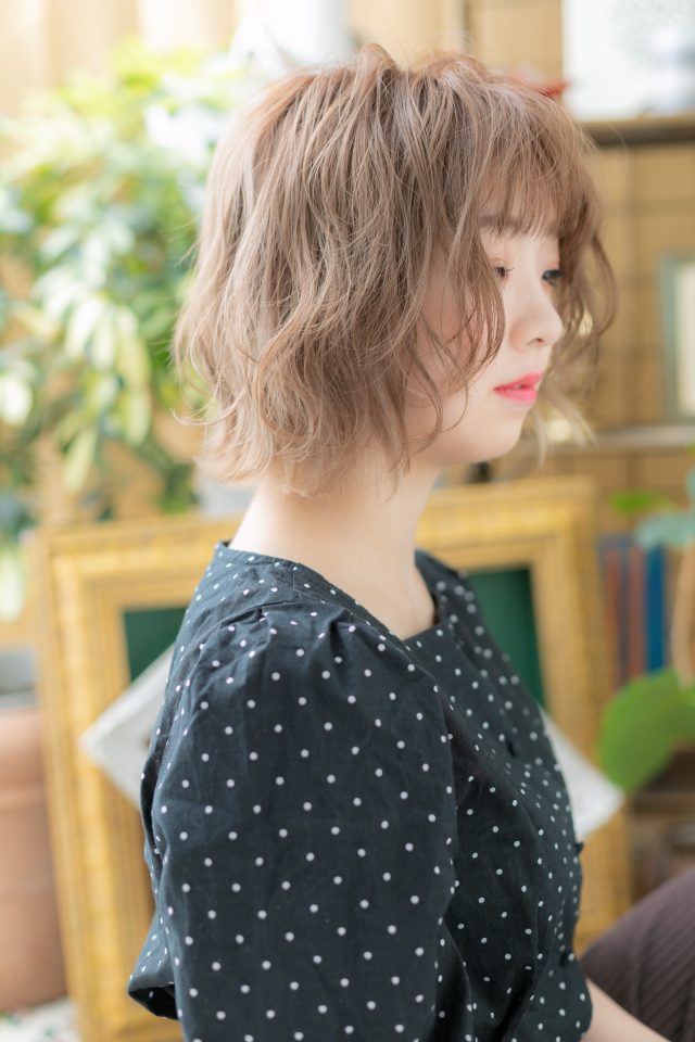 大人かわいいハイトーンくせ毛風ボブウルフ
