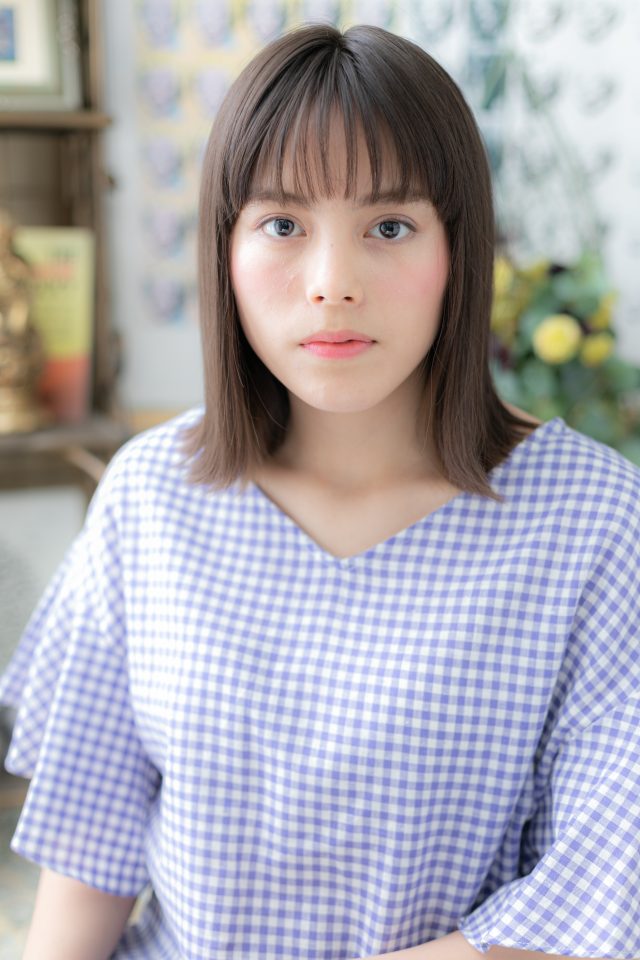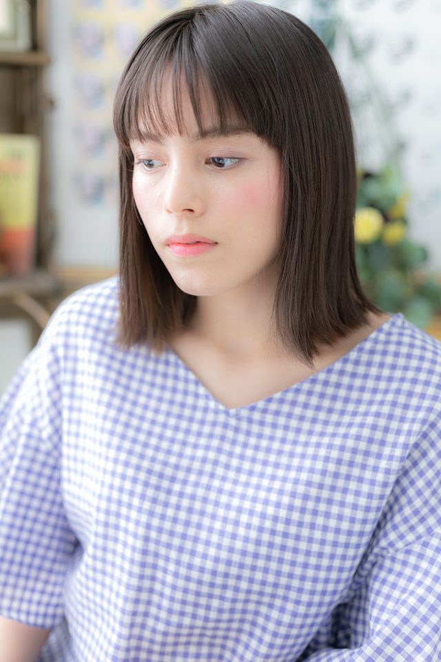前下がりで小顔で大人女子のコーデも完成。斜めバングや厚めバングも大人かわいい。くせ毛風ゆるふわミディや耳かけもモテヘアスタイル。30代・40代にもおすすめ(メイク担当:川口店 成田)