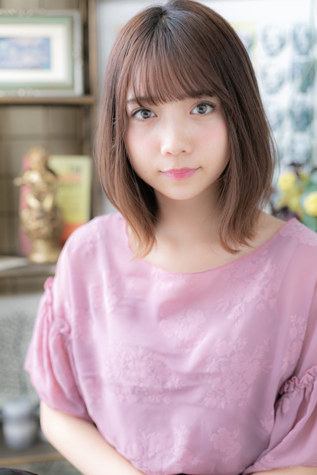 斜めバングや厚めバングで目力UP。ミディアムヘアを際立たせるグラデーションでヘアスタイル。くせ毛風ゆるふわミディや耳かけ韓国風で大人女子のファッションUP。(メイク担当:川口店 成田)