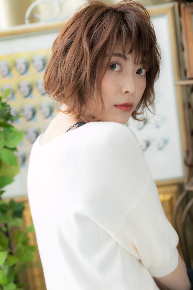 くせ毛風ゆるふわミディや耳かけが大人かわいい。前下がりで小顔。斜めバングや厚めバング、かきあげ前髪で目力UP。ナチュラルボブやフェミニンボブ、大人ボブや前下がりボブの伸ばしかけに◎(メイク担当:川口店 岩淵)