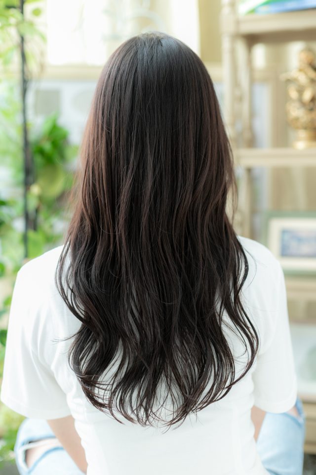 黒髪バレイヤージュくせ毛風大人巻きロング