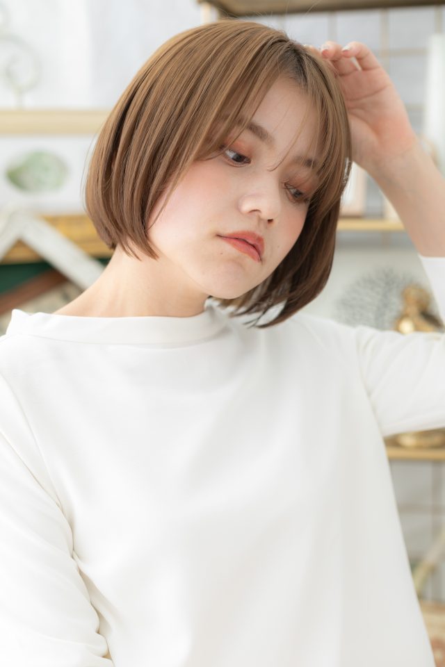 ナチュラルボブフェミニンボブ、大人ボブ前下がりボブ、切りっぱなしボブミニボブで小顔。くせ毛風ゆるふわミディや耳かけ前下がりウルフ、エアリーミディも大人かわいい。斜めバング厚めバング、シースルーバングも◎