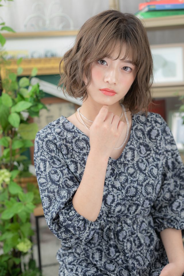 くせ毛風ゆるふわミディや耳かけ前下がりが大人かわいい。斜めバング厚めバングやシースルーバングで小顔。ナチュラルボブやフェミニンボブ、大人ボブや前下がりボブ、切りっぱなしボブも◎(メイク担当:川口店 岩淵)