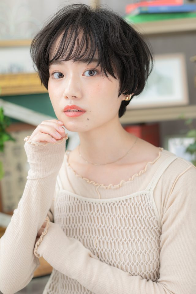 バレイヤージュ/シースルーバング/ハイライト/韓国風/ウェットヘア/マッシュボブ/ナチュラルマッシュショート/ショートマッシュ/イヤリングカラー/丸みショート/かきあげ前髪/くびれショート/ナチュラル/オーガニックカラーは白髪にも対応可/20代/30代/40代