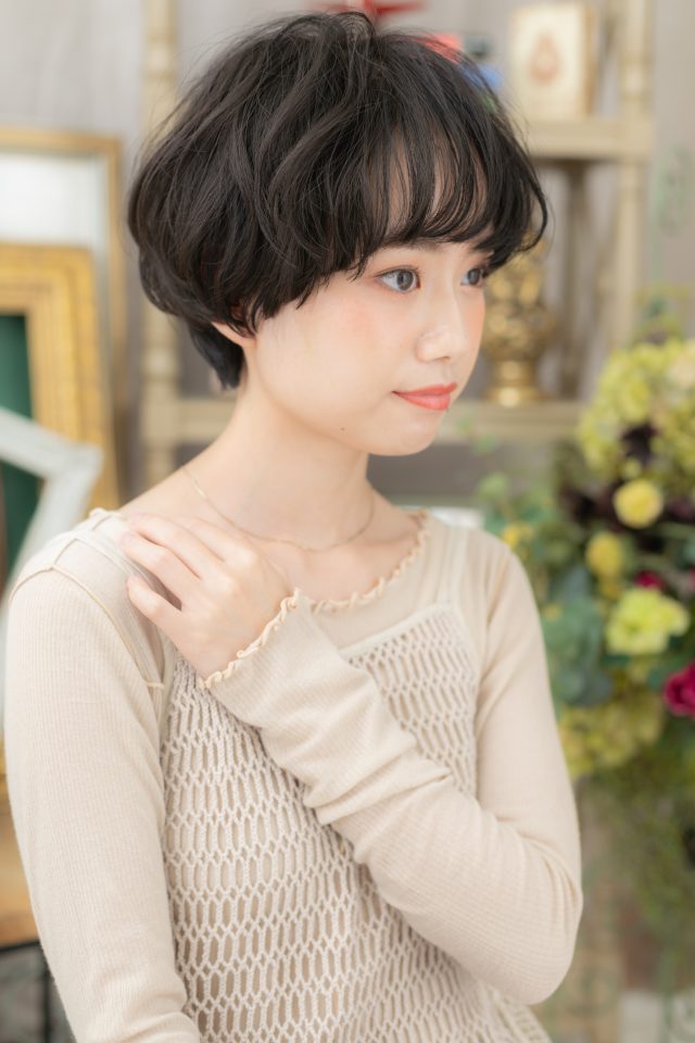 斜めバング厚めバングで小顔。くせ毛風ゆるふわミディや耳かけ前下がりウルフも大人かわいい。ナチュラルボブやフェミニンボブ,大人ボブや前下がりボブ,切りっぱなしボブやミニボブも人気(メイク担当:川口店 成田)