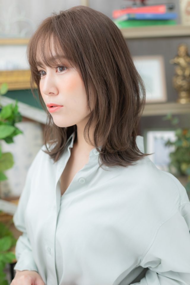 くせ毛風ゆるふわミディや耳かけ前下がりウルフが大人かわいい。ナチュラルボブやフェミニンボブ、大人ボブや前下がりボブも人気。斜めバング厚めバング、シースルーバングで小顔。(メイク担当:COVERHAIRGROUP大西)