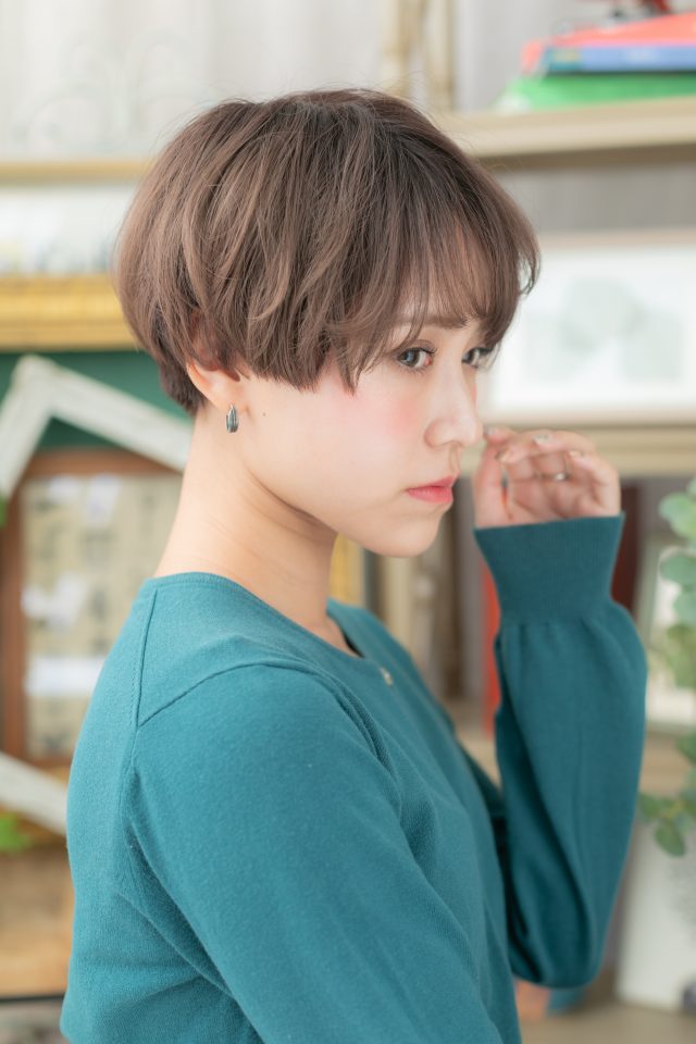 バレイヤージュ/切りっぱなしボブ/ミニボブ/大人ハイライト/韓国風/ウェットヘア/ウルフ/ナチュラルマッシュショート/ショートマッシュ/丸みショート/オリーブアッシュ/くすみカラー/くびれショート/ナチュラル/20代/30代/40代