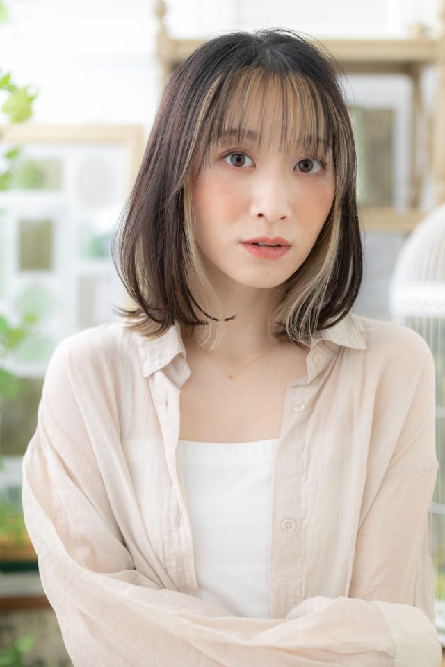 - インナーカラー/バレイヤージュ/ハイトーンカラー/大人ハイライト/韓国風/ボブ/ウェットヘア/マッシュボブ/イヤリングカラー/丸みショート/ナチュラルマッシュショート/かきあげ前髪/くびれショート/エアリーミディ/ナチュラル/20代/30代/40代