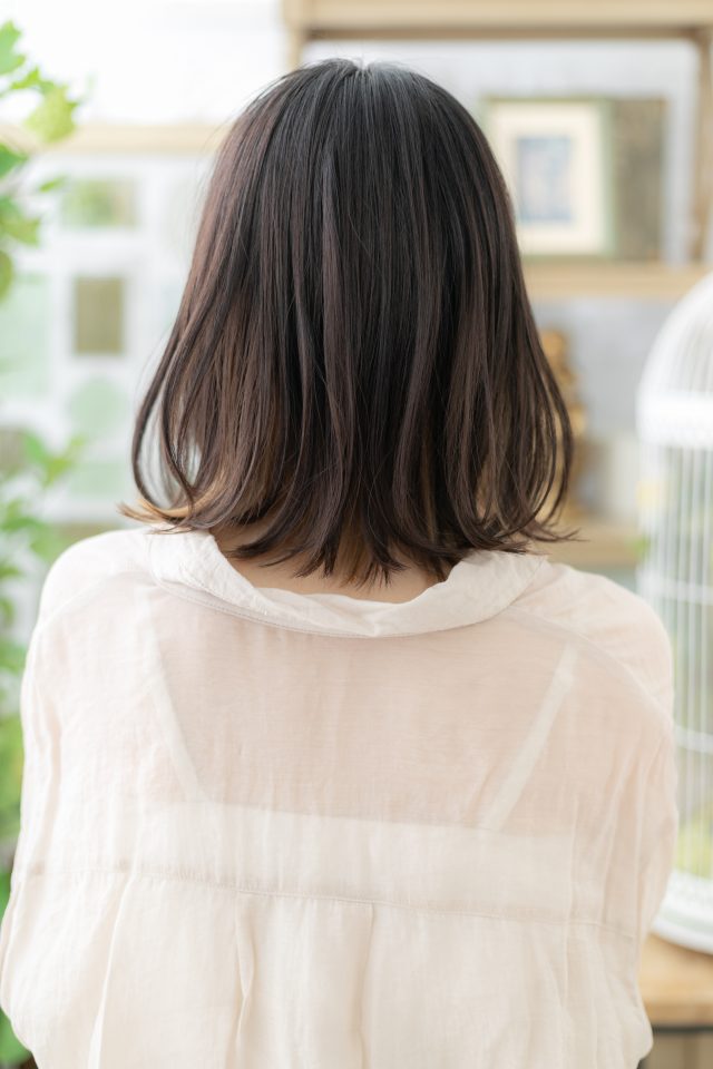 インナーカラー外国人風透け感小顔ロブヘア