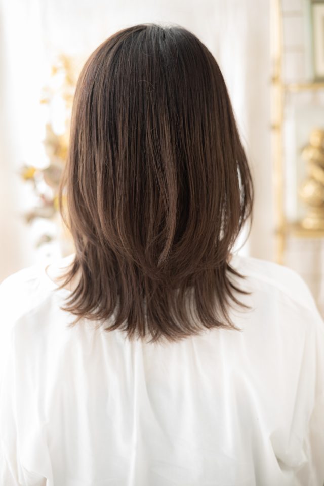 切りっぱなしボブマッシュボブ、ナチュラルボブフェミニンボブの伸ばしかけに◎斜めバング厚めバングシースルーバングで小顔。くせ毛風ゆるふわミディや耳かけ前下がりウルフも大人かわいい。(メイク担当:川口店岩渕)