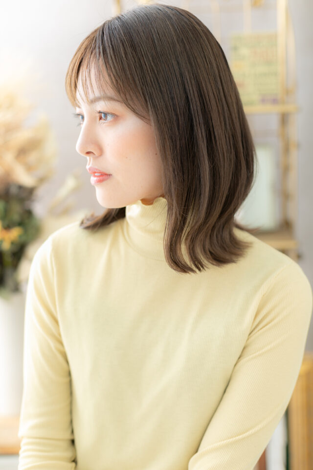 シースルーバングカーキベージュ小顔ミディ