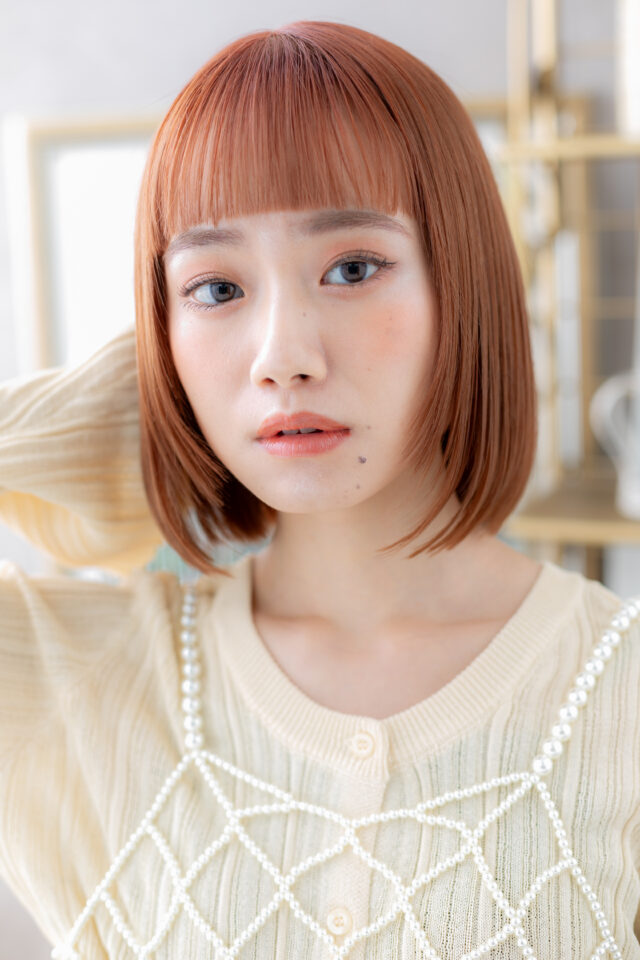 ぱっつん前髪ミルクティーピンクミニボブ
