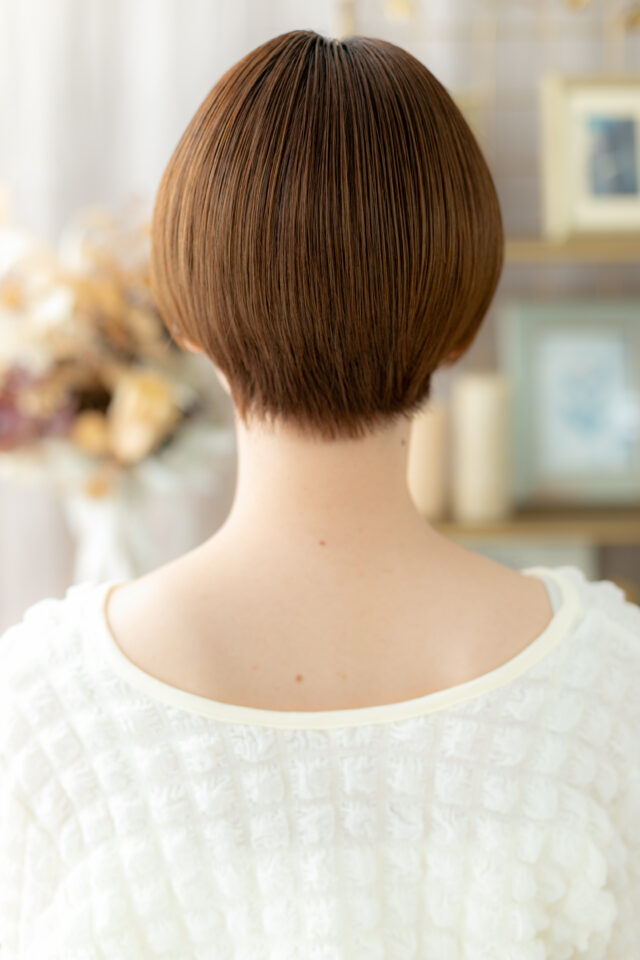 顔周りレイヤーカットの小顔ミニボブマッシュショート。ナチュラルボブ切りっぱなしボブ、前下がりボブウルフボブなど伸ばしかけも楽しい。斜めバングシースルーバング、ぱっつん前髪もGOOD。(メイク担当:川口店岩渕)