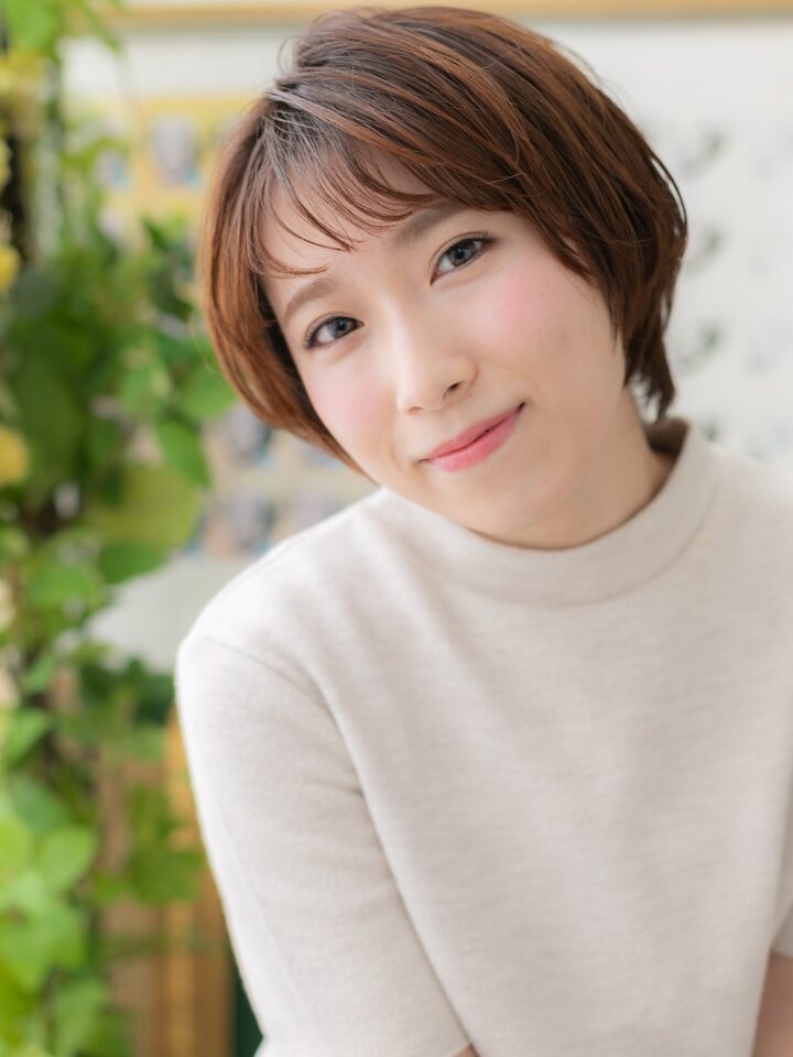 ナチュラルボブやフェミニンボブ、大人ボブや前下がりボブ、ミニボブも◎斜めバングや厚めバング、シースルーバングも大人かわいい。くせ毛風ゆるふわミディや耳かけもOK。前下がりで小顔。(メイク担当:北浦和店 成田)