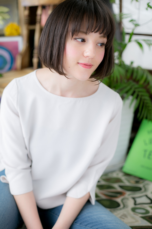 モードでクラシカルな印象の黒髪ストレートボブに、シースルーの斜めバングをオン。大人っぽい雰囲気の中にあどけないポイントを入れることで、表情がやわらかくなり親しみやすい好感スタイルにイメチェン。耳かけも◎