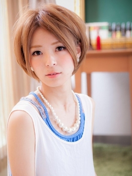 前髪が長めなので、分け目で印象が変わる、アレンジしやすいナチュラルクールなスタイル。日差しに映えるハイトーンカラーで涼しげに♪