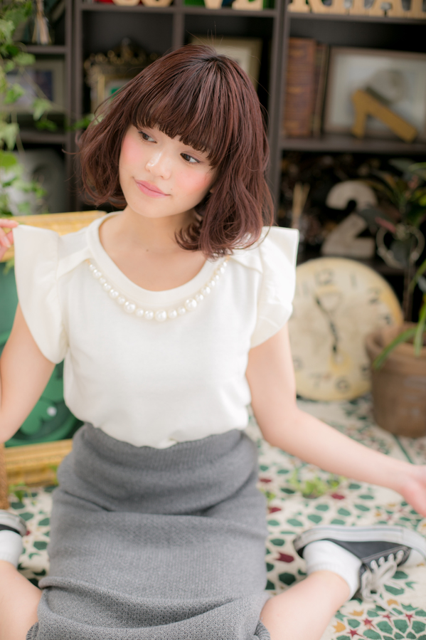 ブラウンのダークトーンできれいな肌色を強調☆レイヤーが入ってないので重めですが、ちゃんとウェーブが出るようになっているので、セットも楽にできます。カットは、北浦和店 千原にお任せください。